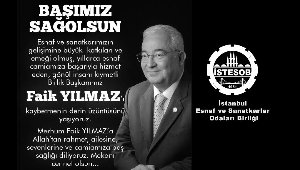 İstanbul Esnaf ve Sanatkârlar Odaları Birliği’nin değerli Başkanı, camiamızın duayeni Sayın Faik Yılmaz’ı kaybetmenin derin acısı içindeyiz.