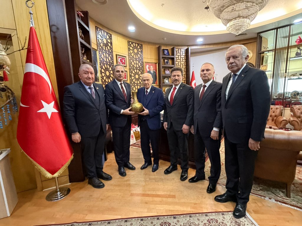 İstanbul Esnaf ve Sanatkarlar Odaları Birliği Başkanı Mesut Şengün ve beraberindeki heyet, Milliyetçi Hareket Partisi Genel Başkanı Devlet Bahçeli’yi makamında ziyaret ederek esnaf ve sanatkarların gündemine dair istişarelerde bulundu.