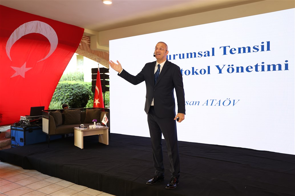 Programın ilk gününde Yazar Hayati İnanç, tarih ve kültürden örneklerle meslek ahlakı, sabır, emek ve doğruluk gibi değerlere odaklanan bir sunum yaptı. Ardından Eğitimci İhsan Ataöv, protokol kuralları ve liderlik konularında verdiği eğitimle yöneticilere pratik bilgiler sundu.